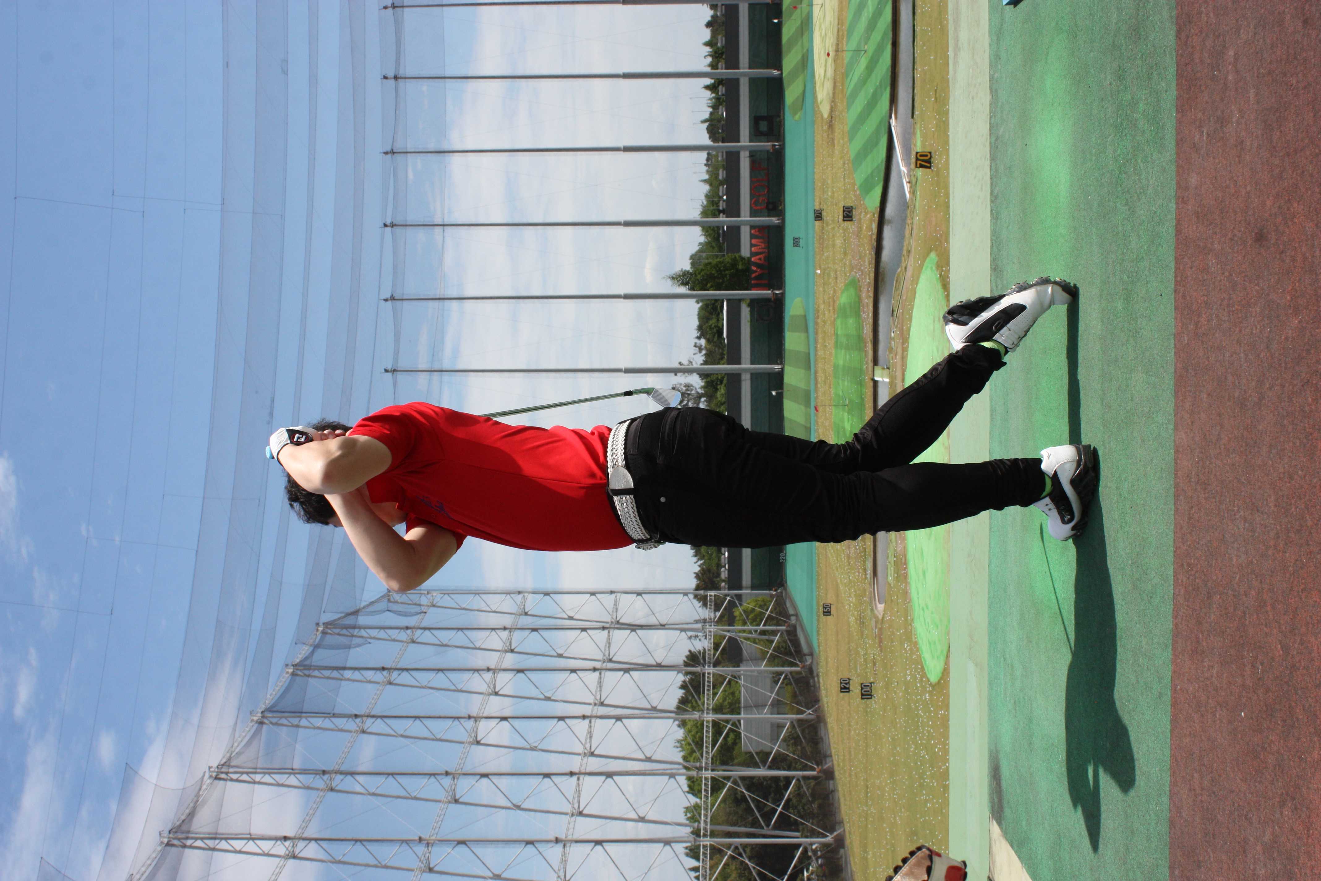 バックスイングの体の回転は、L字スイングでターゲットラインに対し正しく90度回転できていれば、十分に体幹部が捻転されていますので、それ以上回転させる必要はありません。また、それ以上回すと上体が反ってしまう動きになりますので注意しましょう。リフトアップ動作を行うことが、その動きを防ぐ動作でもあるのです。